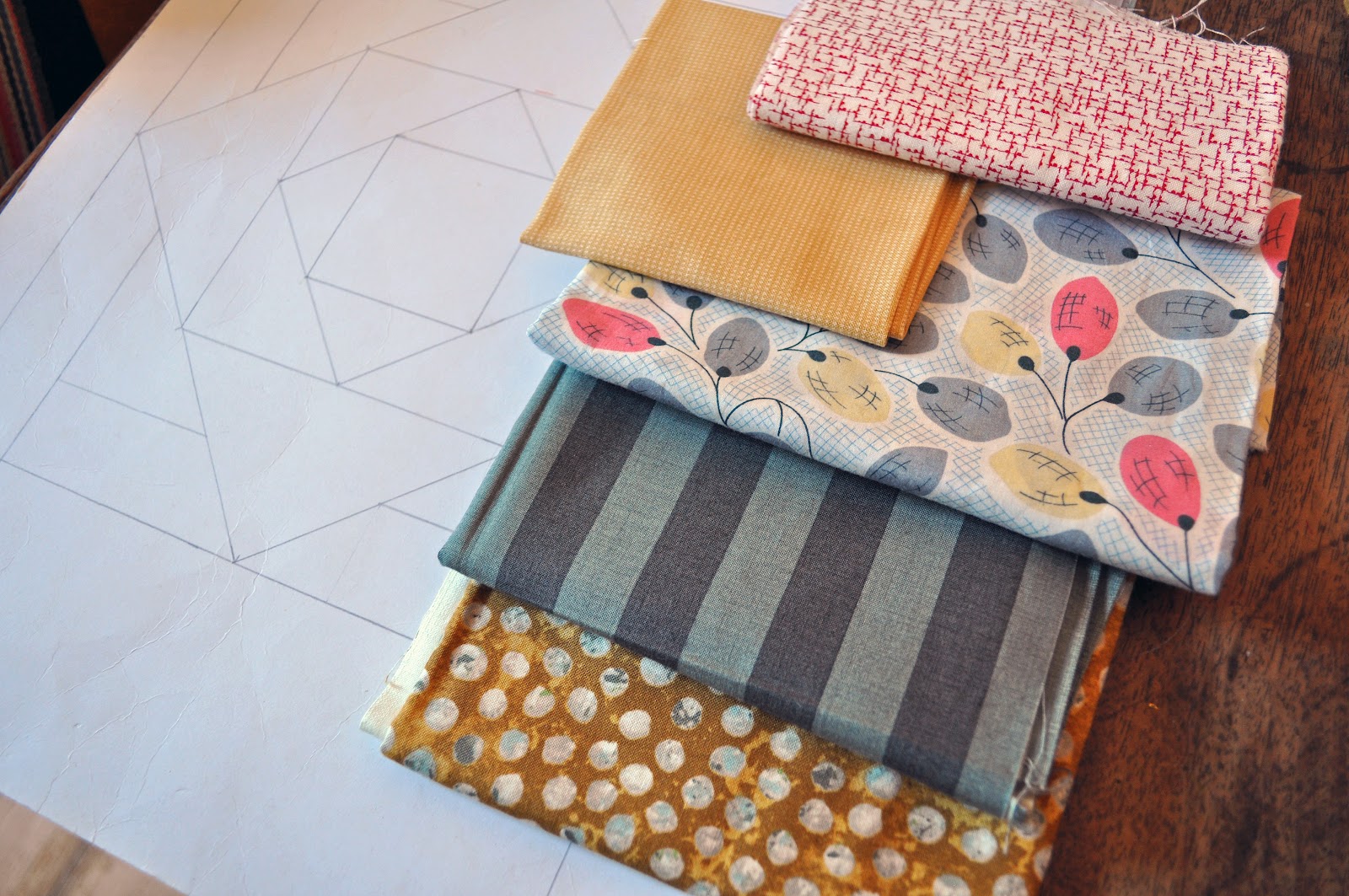 In keeping with my love of all things "in the beginning stages" I have been having a hoot of a time in the Make and Do Room pulling out fabrics from my stash and putting together a small collection for Project X.